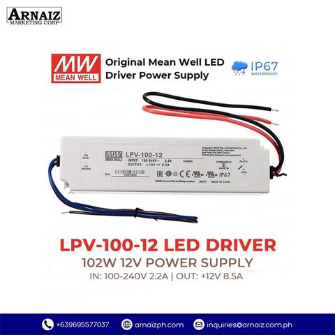 The Mean Well LPV-100-12 LED Driver delivers reliable 12V constant-voltage output, making it ideal for LED strips, signage, and lighting systems in indoor and outdoor environments.